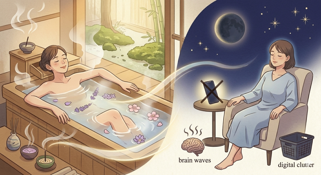 【おすすめの対処法】 無理に動こうとせず「自分を整える」時間に充てましょう 好きな香りの入浴剤でお風呂に浸かったり デジタルデトックスをして脳を休めるのが効果的です